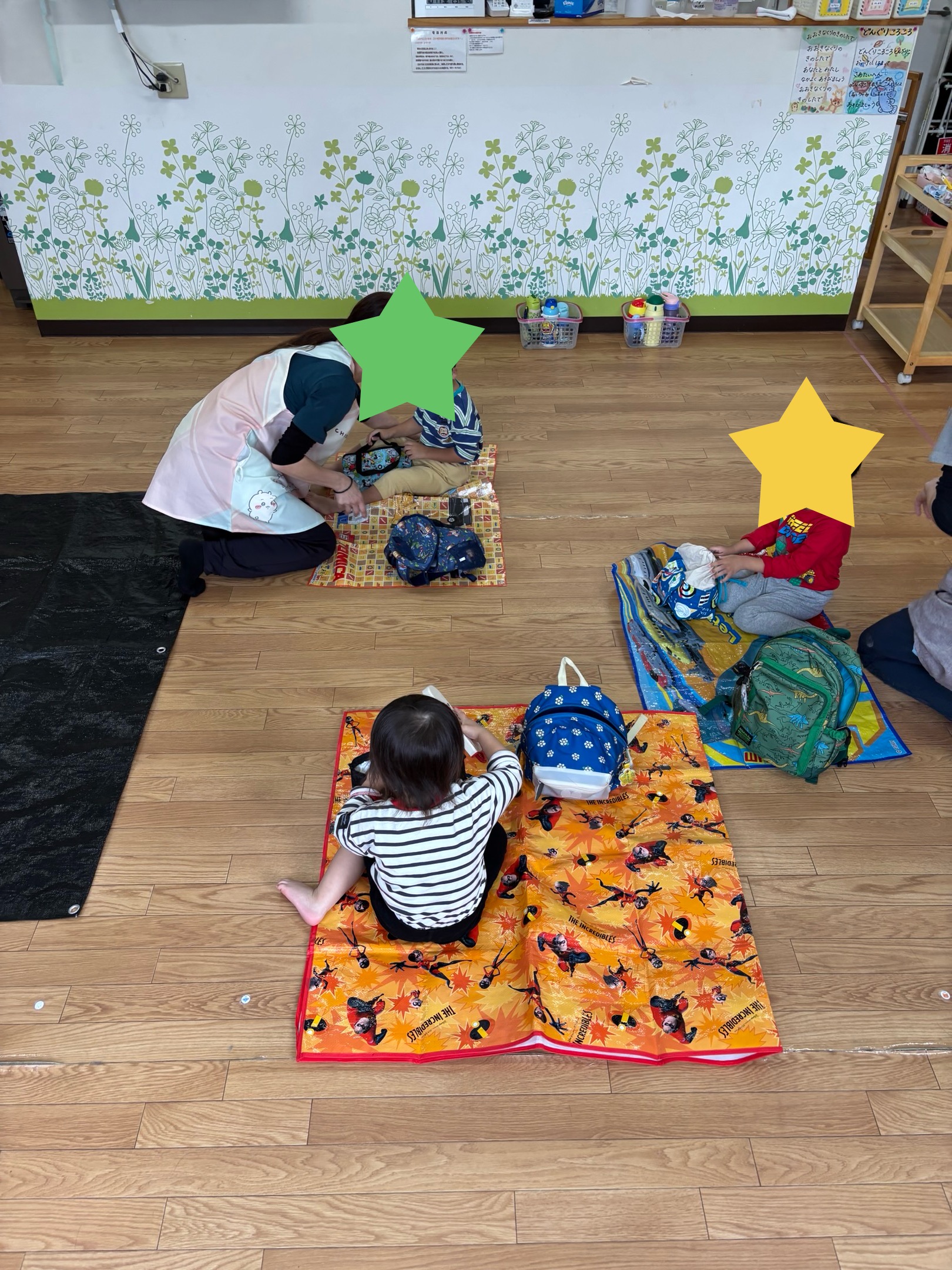 2歳児のお友達はリュックを背負いながら登園し、逞しさを感じます✨