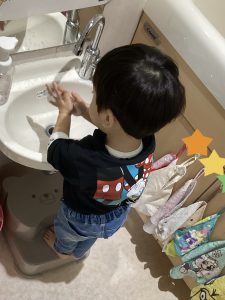 普段から保育者が手遊びをしながら歌を歌っていた事もあり、歌を口ずさみながら手を洗う子も居ました!しっかり子ども達の頭の中に残っていたようで嬉しいです☺️