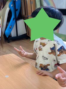 クレヨンを持つ前に、保育者お手製の描けないクレヨンで練習…🖍️