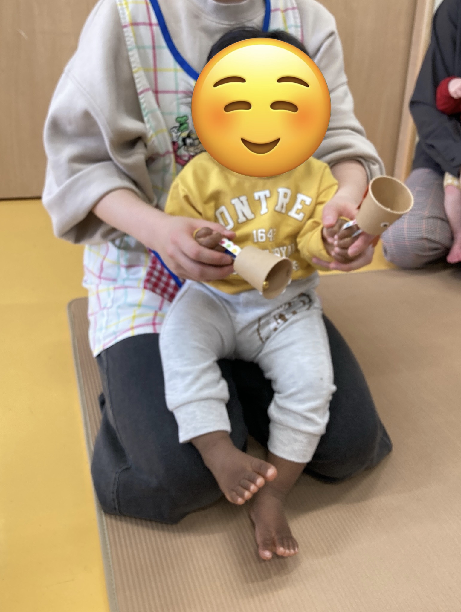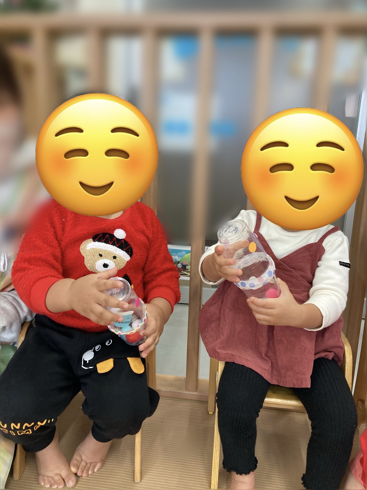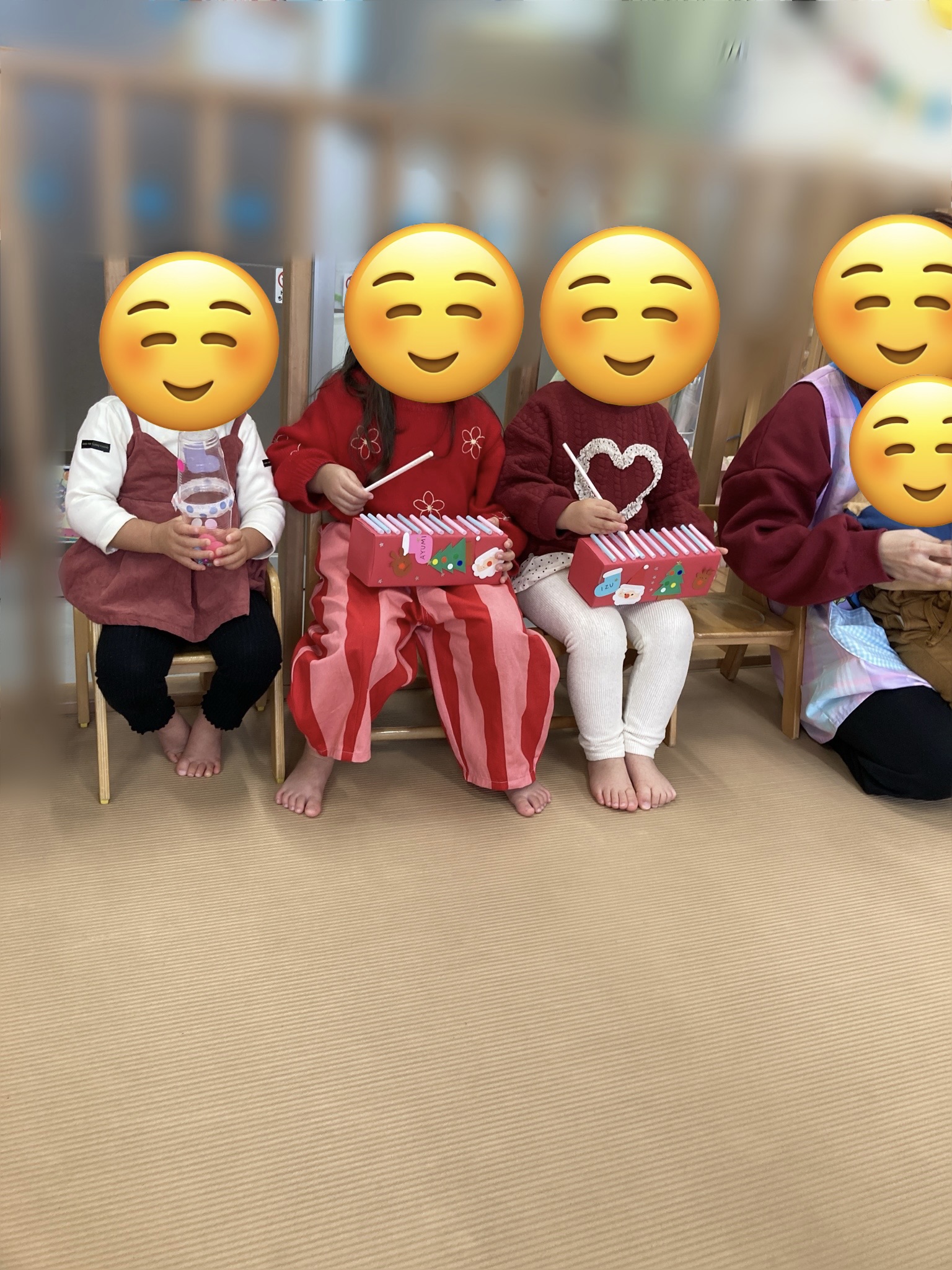 クリスマス会当日、手作りをした鈴やマラカス、ギロの楽器を演奏してサンタさんを向かい入れました!