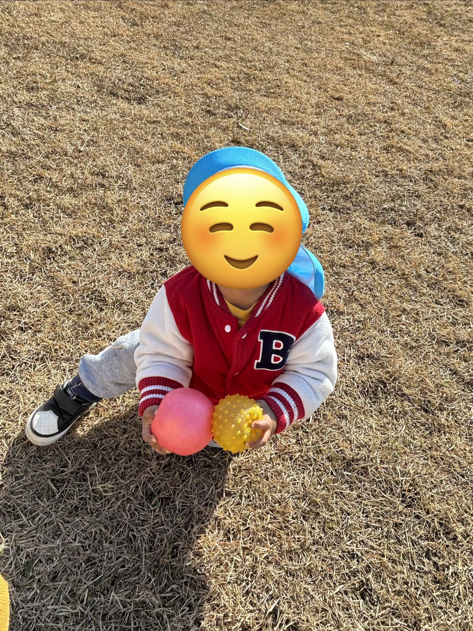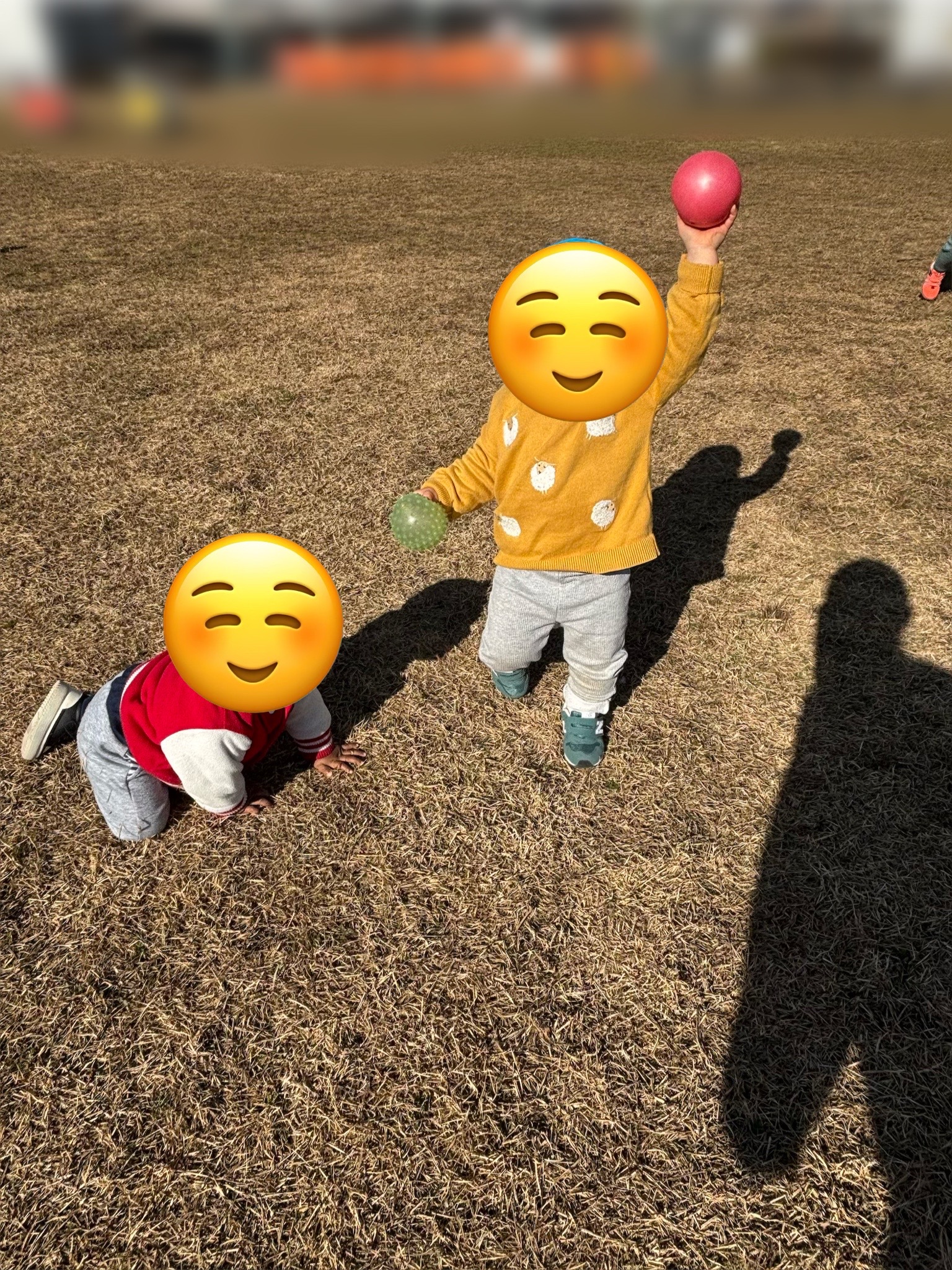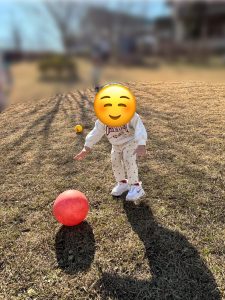 今回は芝生の広場でボール遊びや傾斜部分で体のバランスを保ちながら登ったり、降りたりして体を動かして遊びました😌