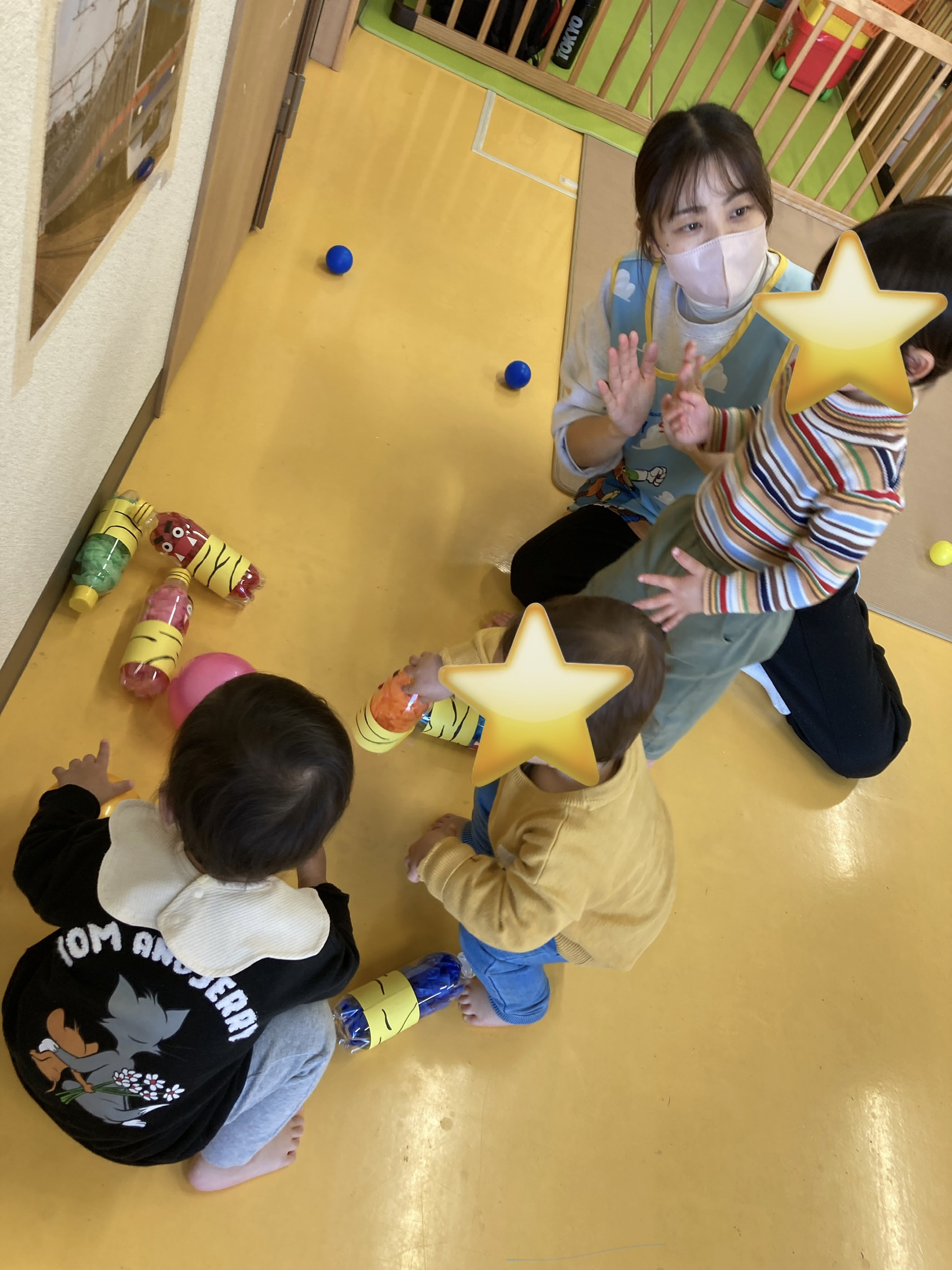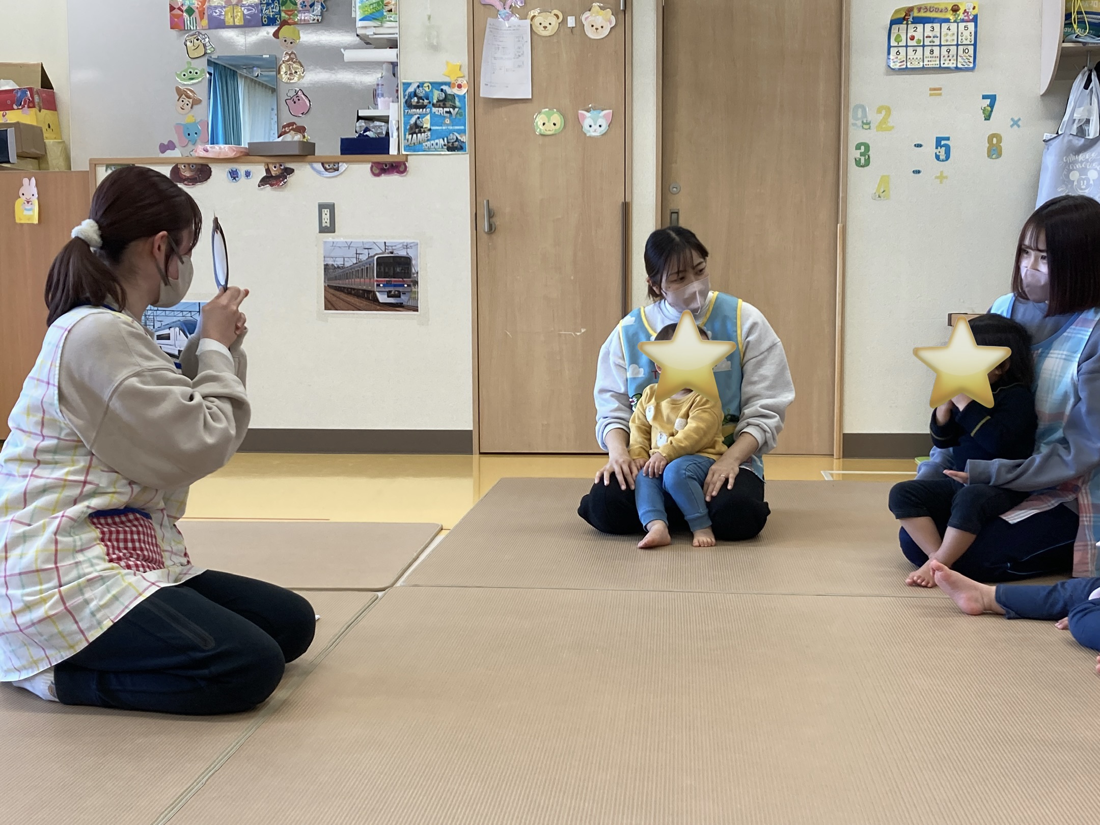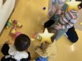 鬼さんが見える不思議な虫眼鏡にドキドキの子ども達でした🤭お話を聞いたあとは、鬼をやっつけるぞ!!とみんなで鬼に向かって豆の代わりにボールで鬼たいじ♪