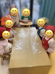 子どもたちもエプロンを着けることにも慣れ、