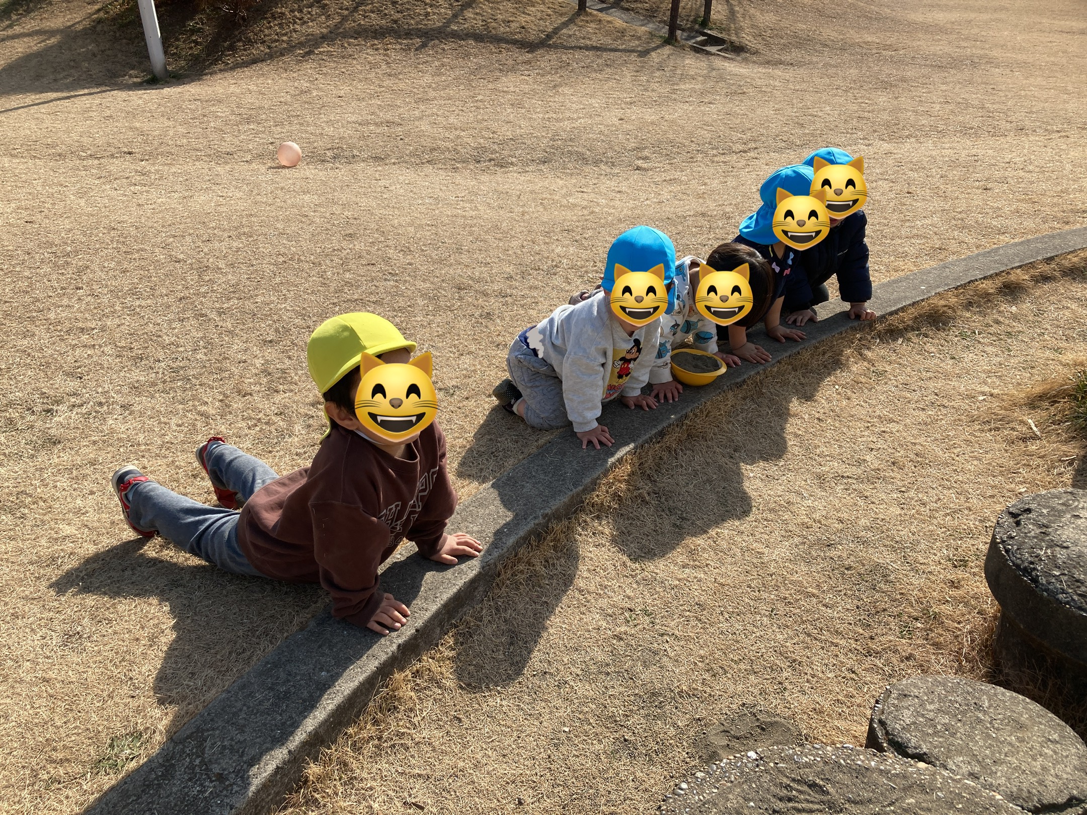 最近は猫になりきって遊ぶ子もおり、飼い主役の子が「猫ちゃんご飯だよ〜!」と声をかけると、次々に猫ちゃんたちが集まってご飯を食べていました🤭