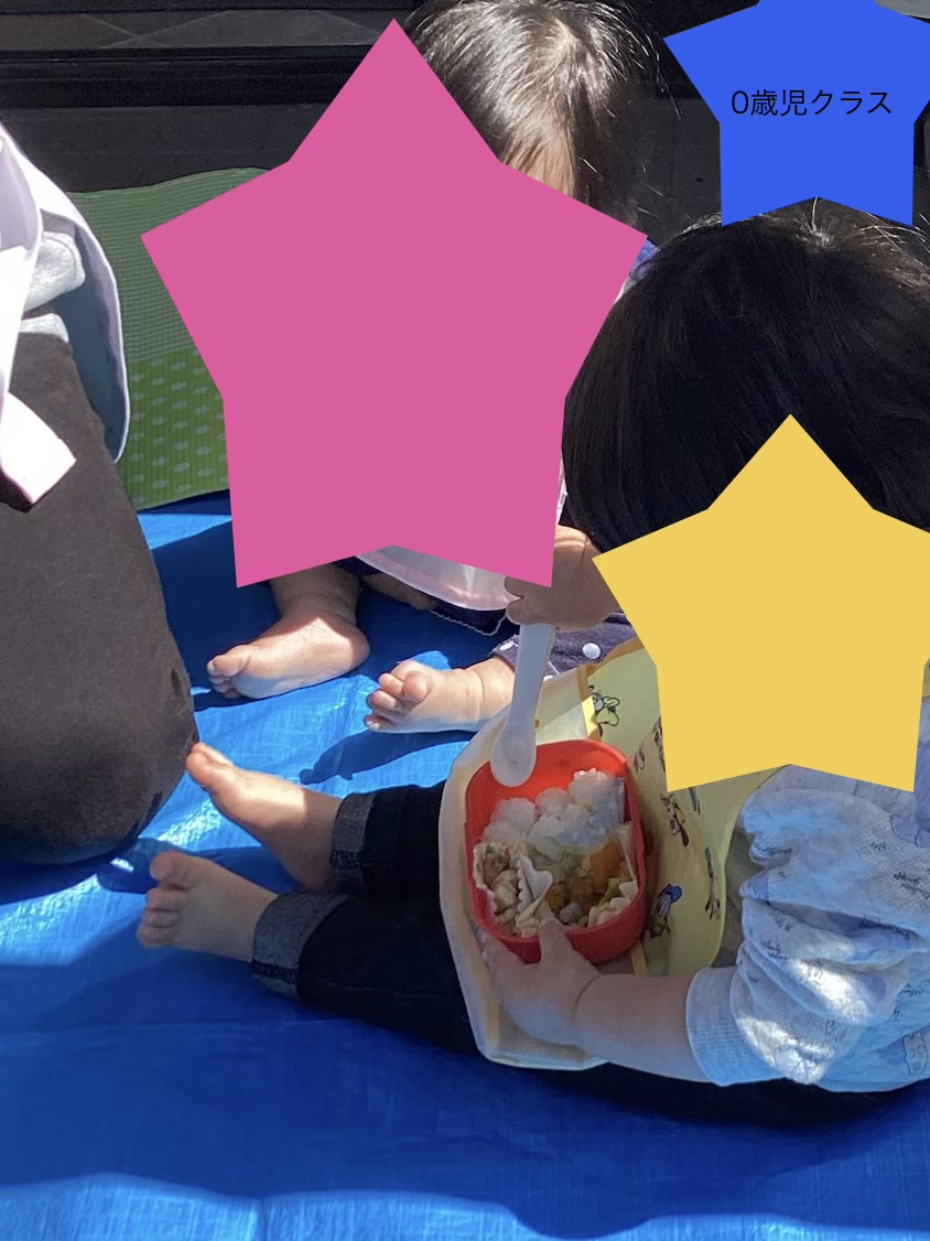 0.1歳児クラスのお友達も、給食の先生がお弁当サイズに給食を作ってくださり、自分でお弁当箱に詰めました。