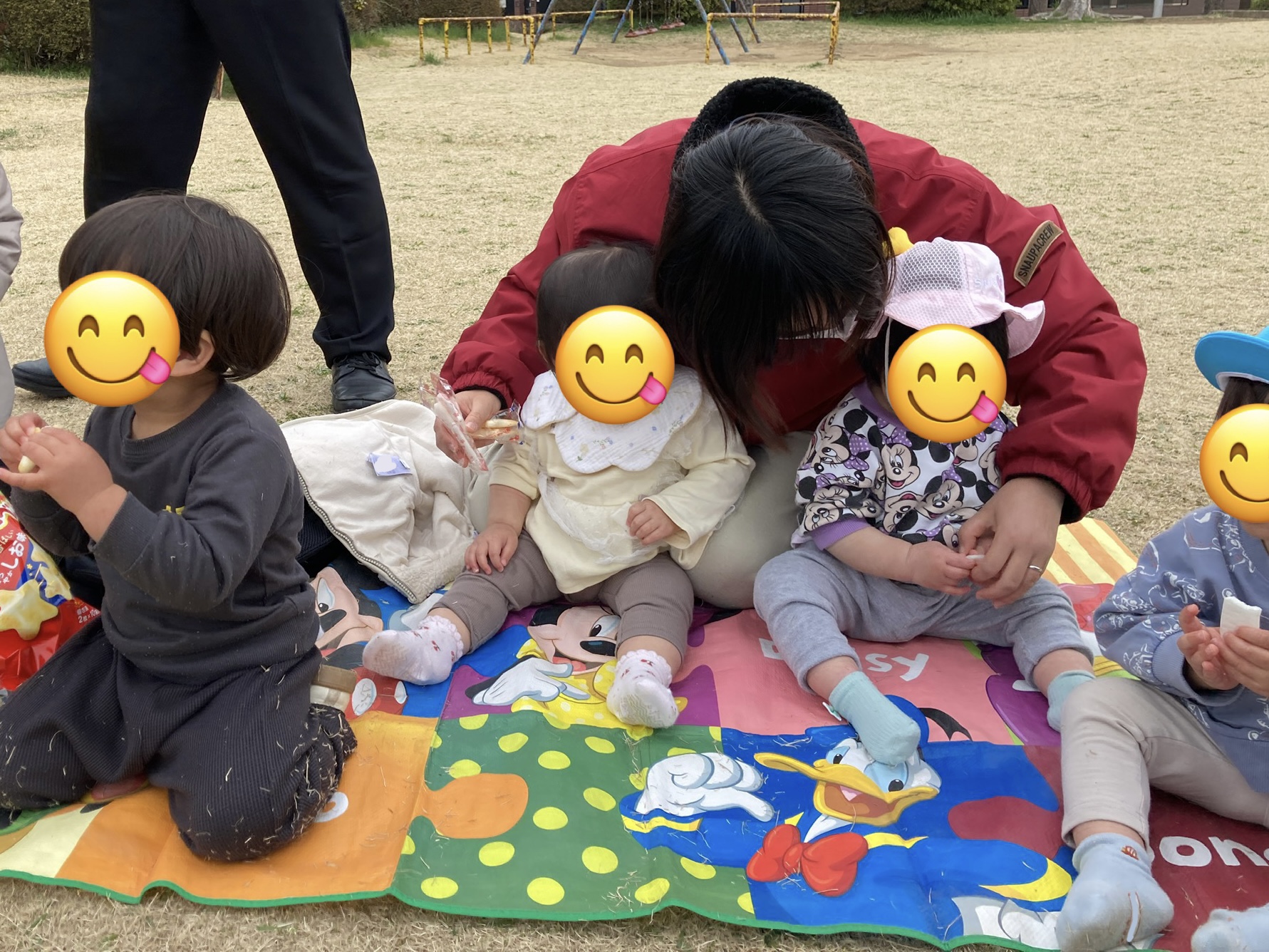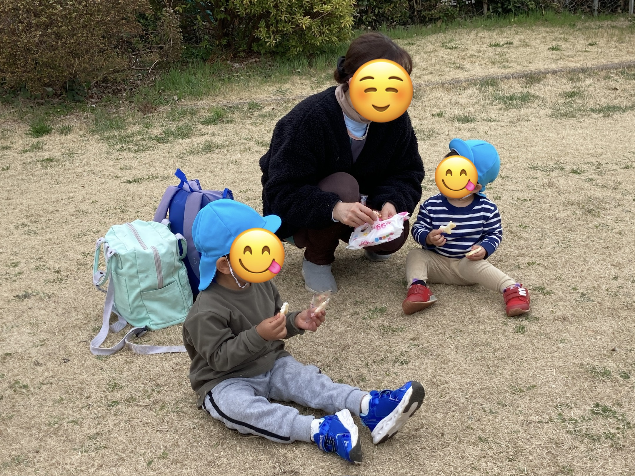 遠足なので特別に、大好きな第五公園でおやつを食べました♪