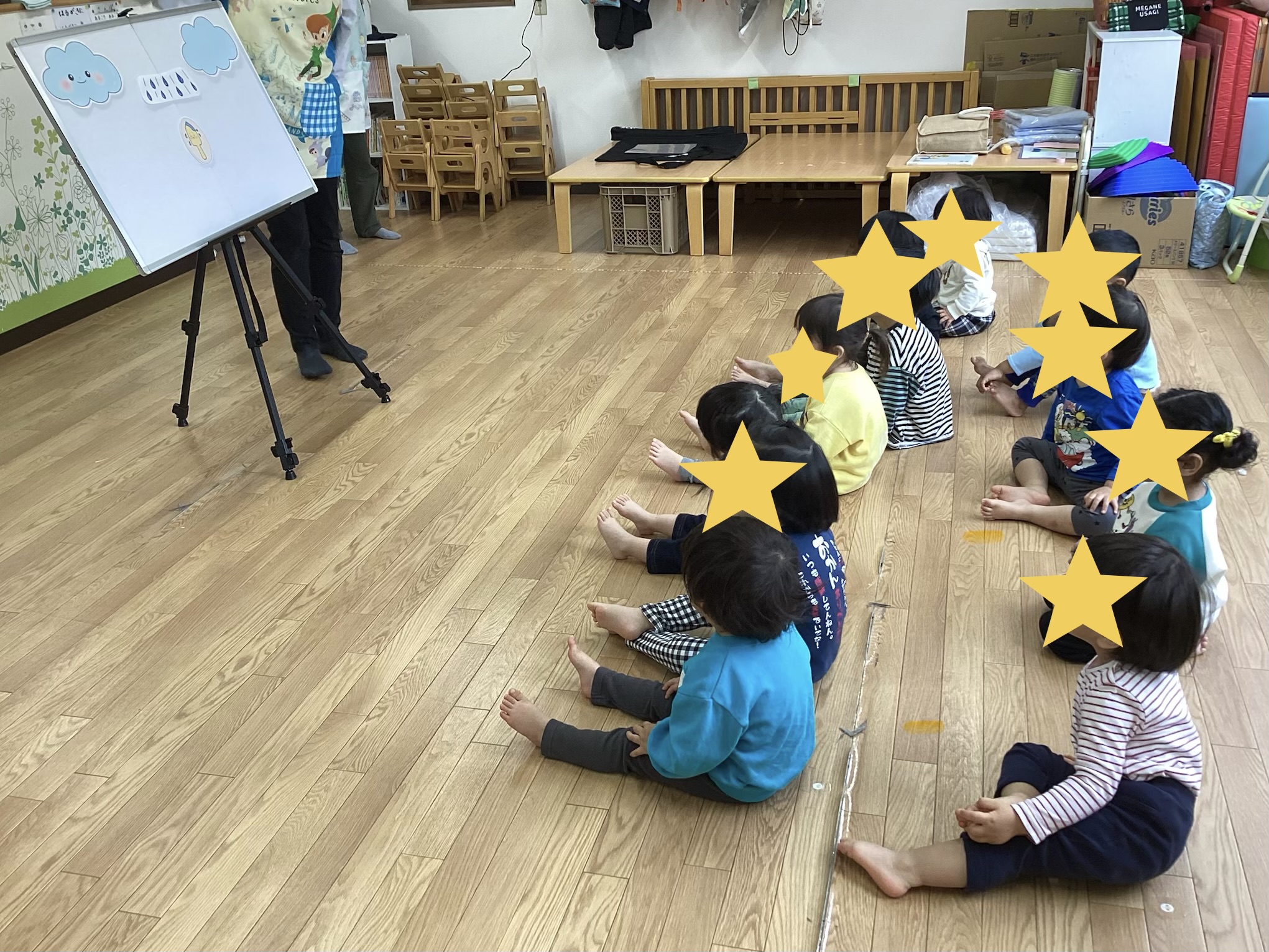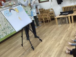 お別れ会は、保育者からパネルシアター「にじ」のプレゼントからスタートです!
