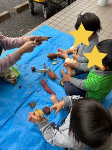 焼き芋ごっこの後は、実際にお芋に触れてみました🍠